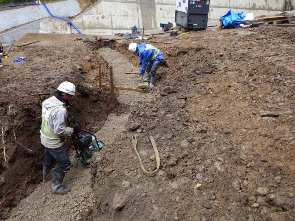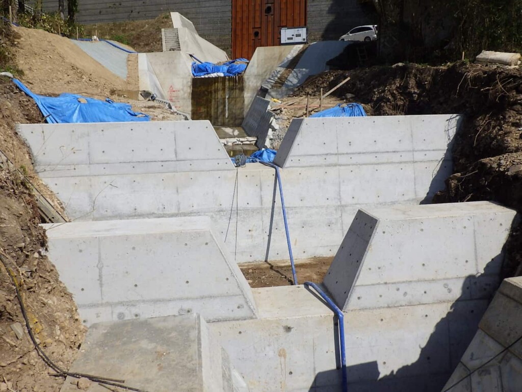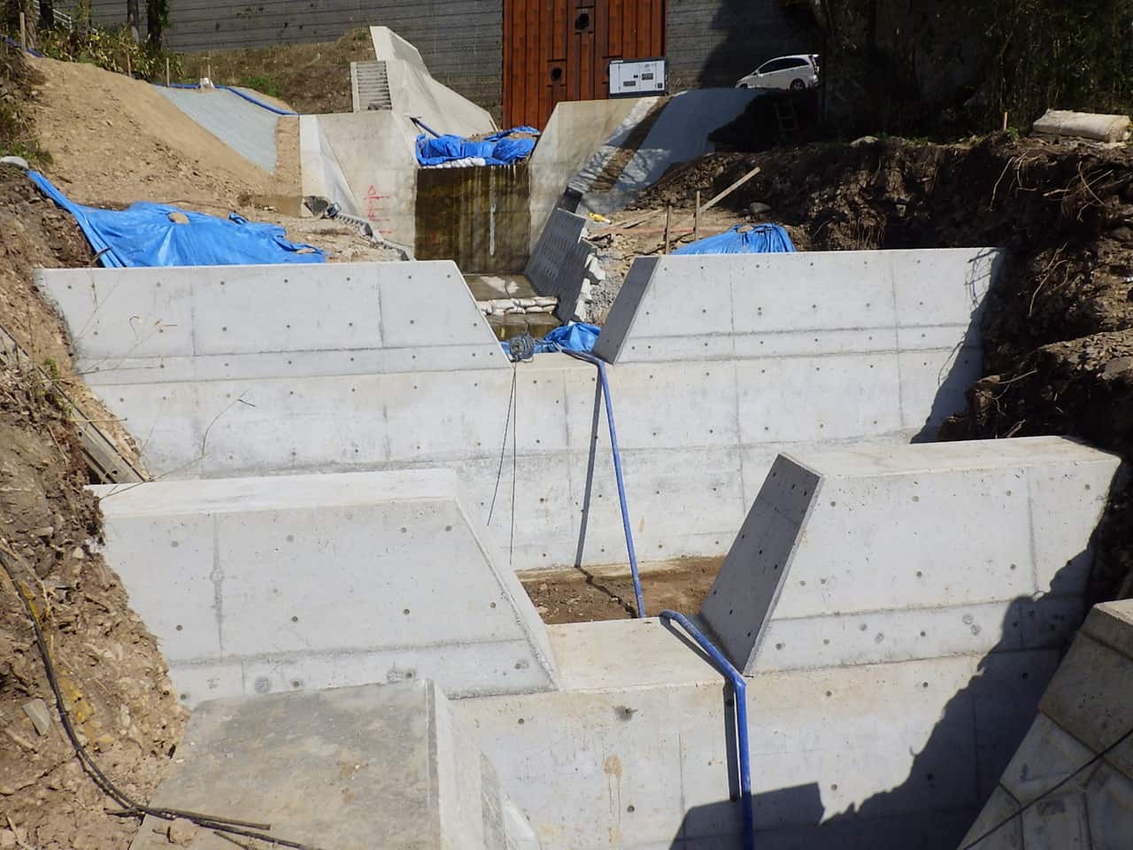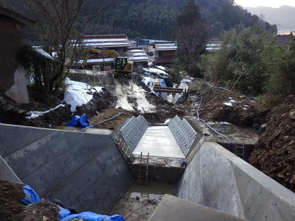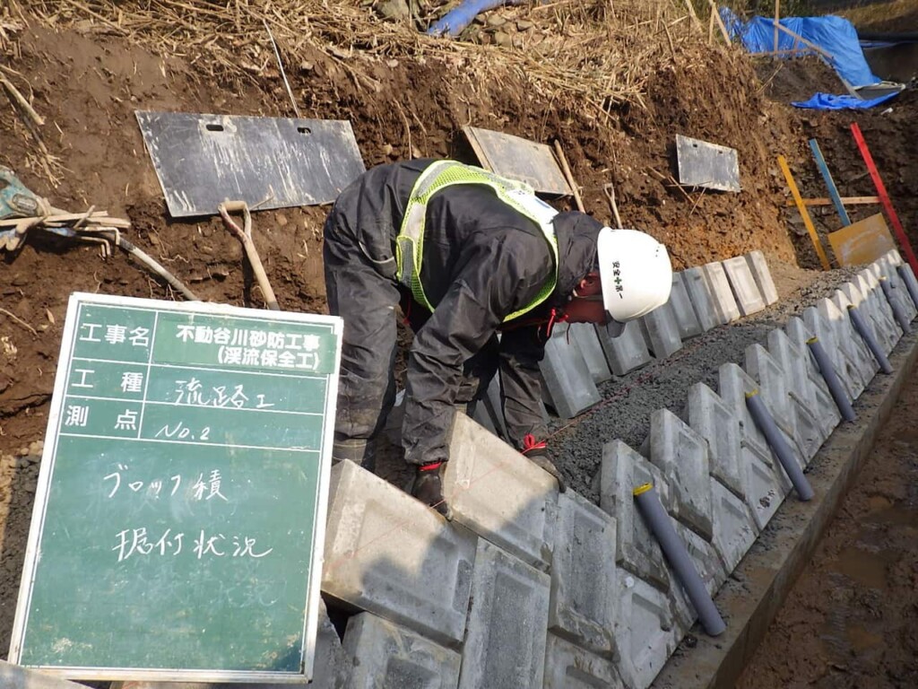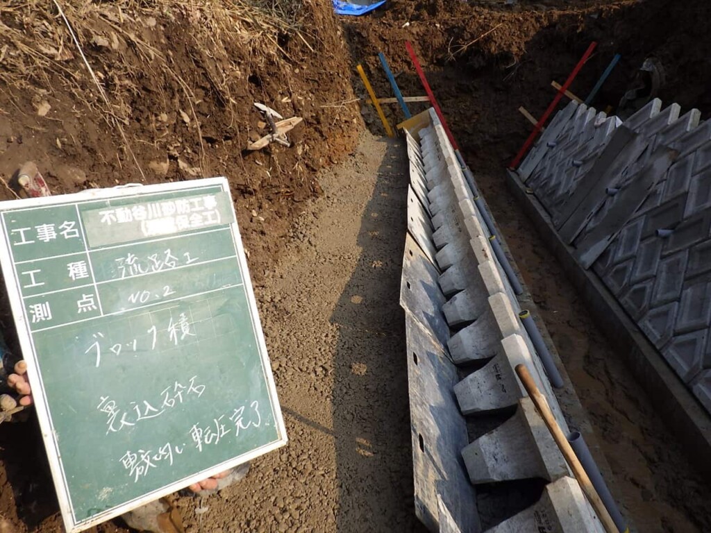 渓流が蛇行することや、流水によって川岸や川底が侵食されることによる災害を防ぐことを目的とし渓流の下流部において、想定される洪水を安全に下流へ流下させるための砂防施設を構築した工事です。