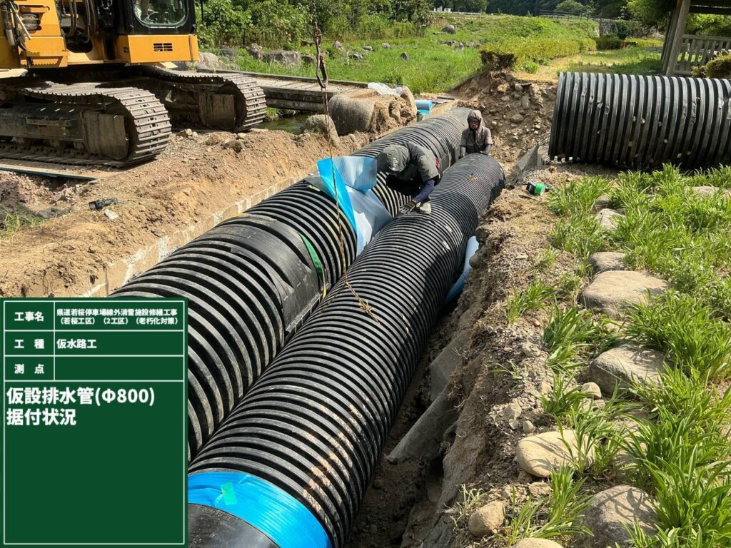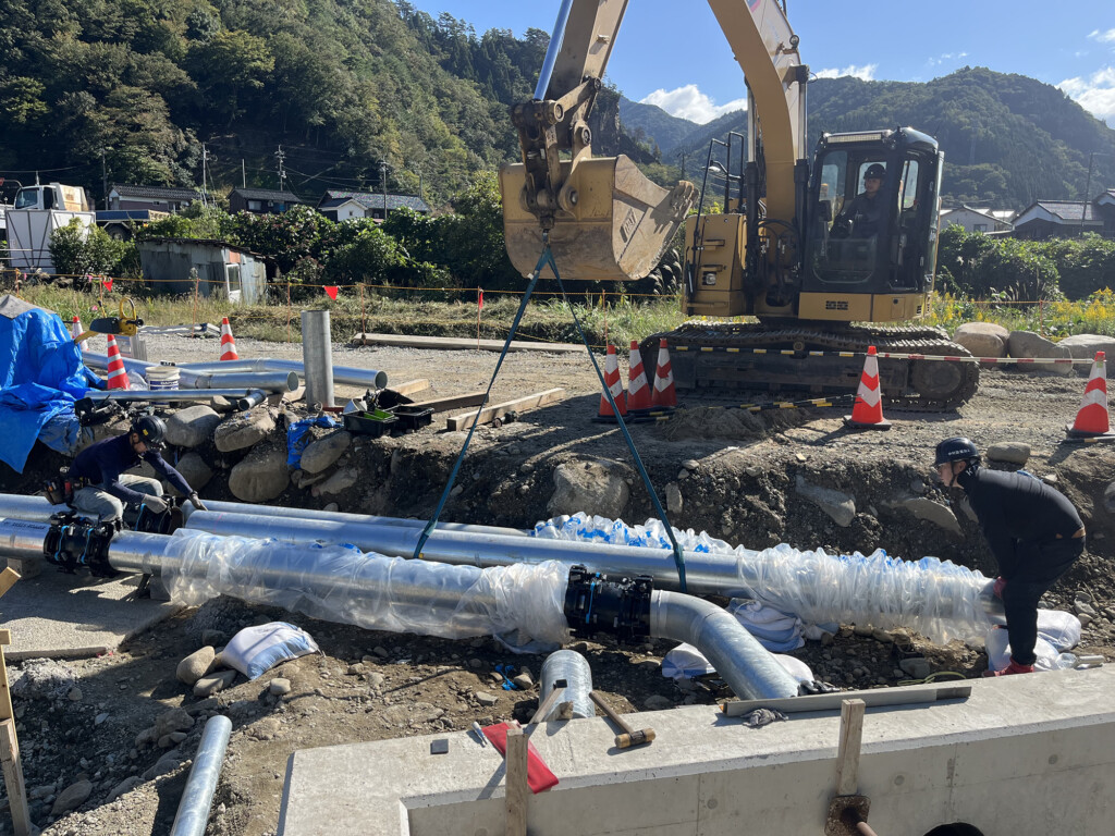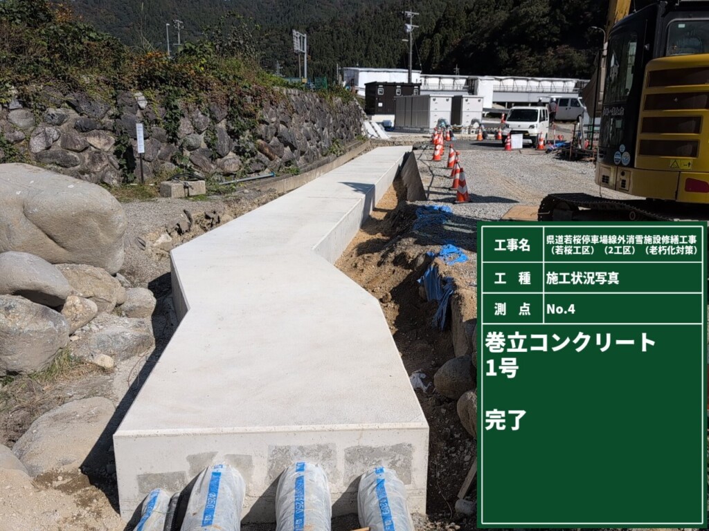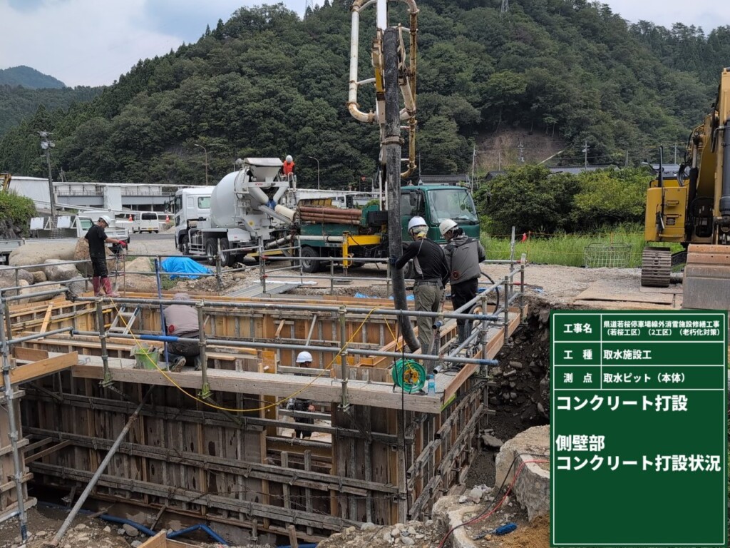 本工事は、八頭郡若桜町若桜地内の県道に設置されている老朽化した消雪取水施設の配管、取水ピットなどを新しくして、冬季道路の雪を溶かし安全な通路確保を目的とした工事です。施工場所は、若桜町が管理する親水公園内であった為、景観には十分に配慮して行いました。