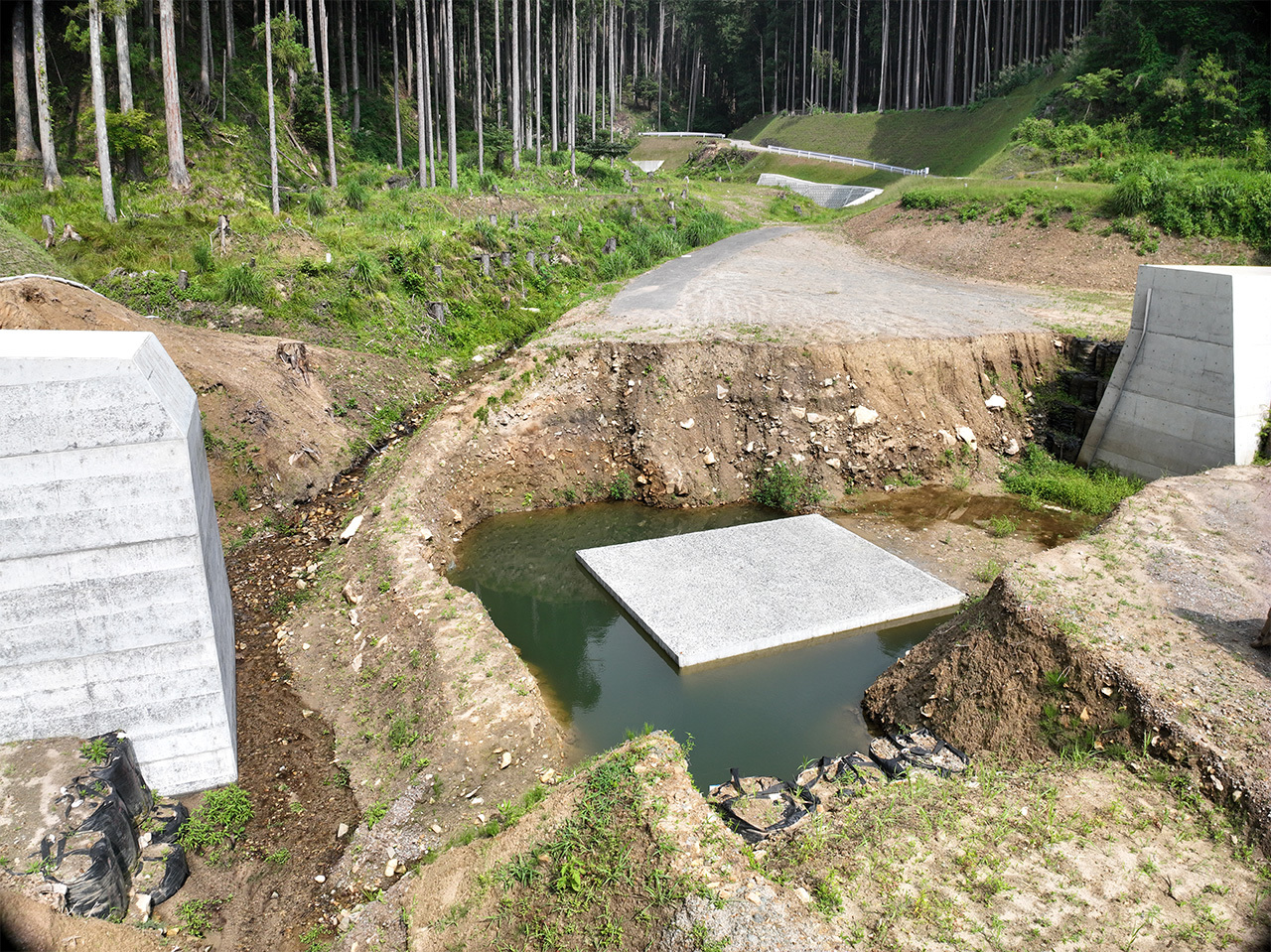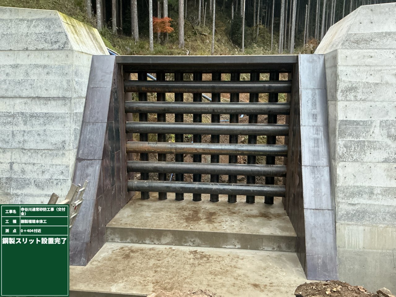 本工事は、豪雨時に発生するおそれのある土石流及び土砂流出による下流域への被害を防止することを目的として、鋼製スリットやコンクリート堰堤、ブロック積を施工しました。